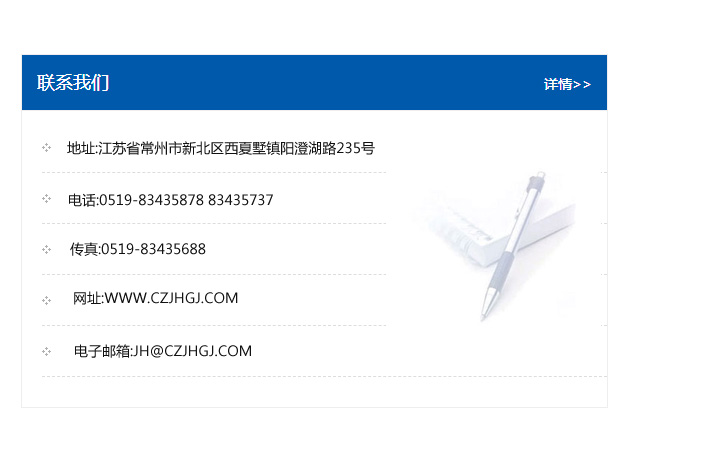地址:常州市新北區友邦商務大廈1幢16、17層  電話:0519-85101652  傳真:0519-85112595  郵編:213022  網址:www.cz-jiayue_cn.defengsuliao.com  郵箱:xiajifengaa@163.com